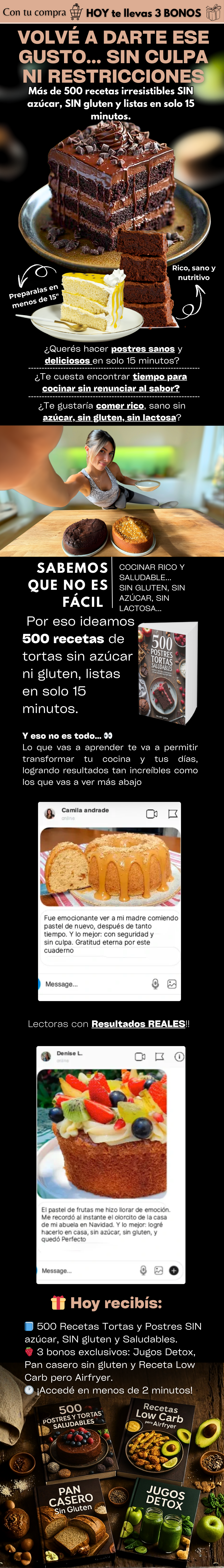 Incluye más de 500 recetas de tortas y postres sin azúcar, sin harinas refinadas y sin lactosa, pensadas para comer rico sin descuidarte.